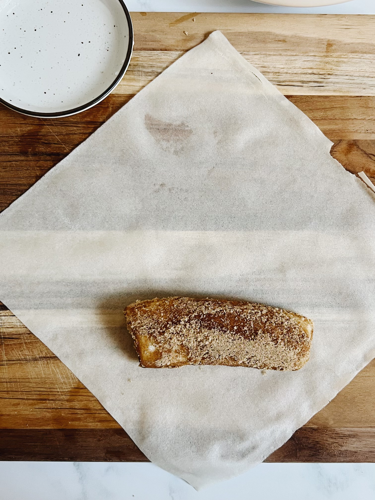 When frying, the lumpia should turn a golden brown color like the one below! Here’s an optional step: you can make a side “sauce” to roll your lumpia in for extra sweetness. I use equal parts brown sugar and water in a small saucepan until it’s melted. Once the lumpia are fried, drained, and cooled slightly, they can be coated in the sugar sauce. It’ll make them stickier, but totally worth it!