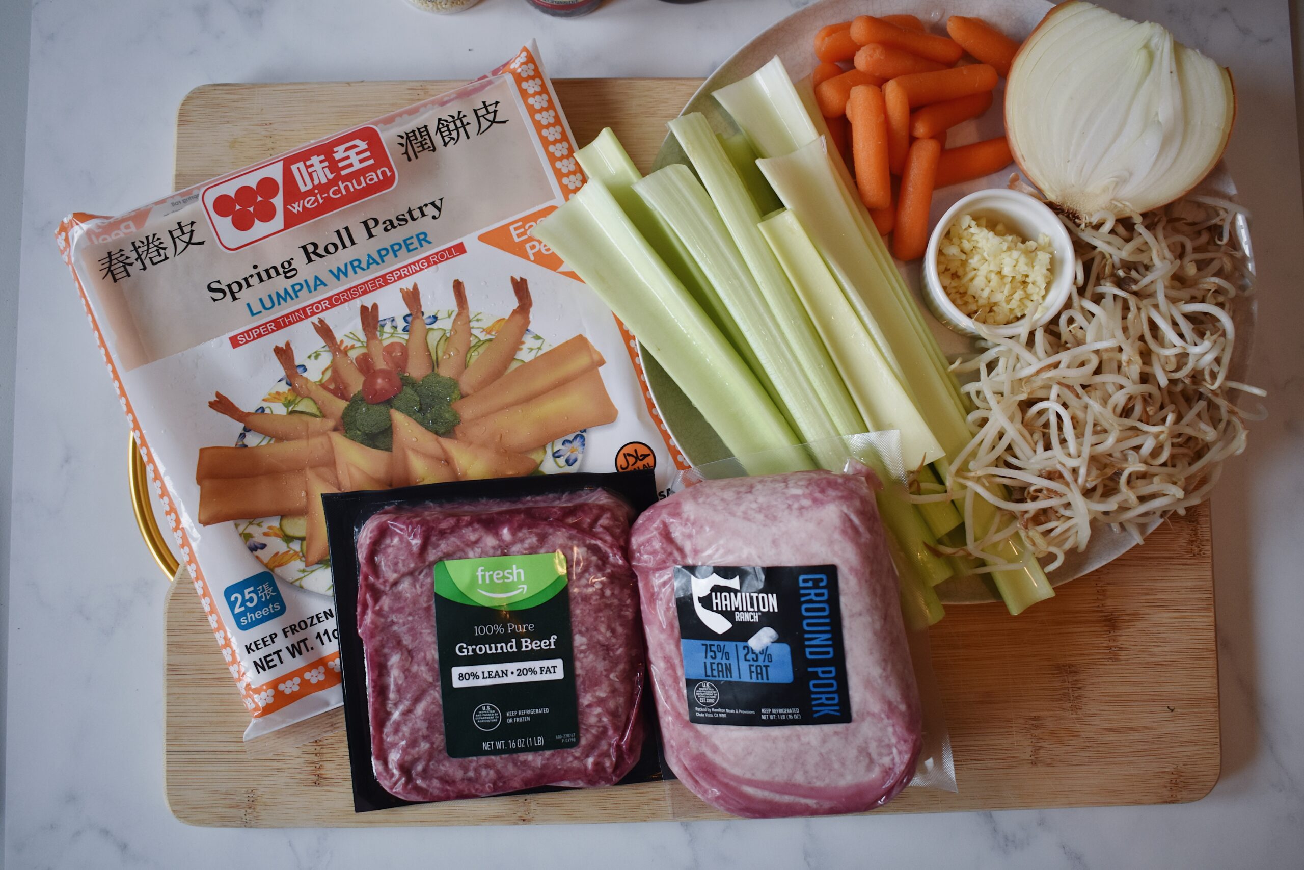 • 2 packs lumpia wrappers (25 in each pack, around 35 wrappers will be used)