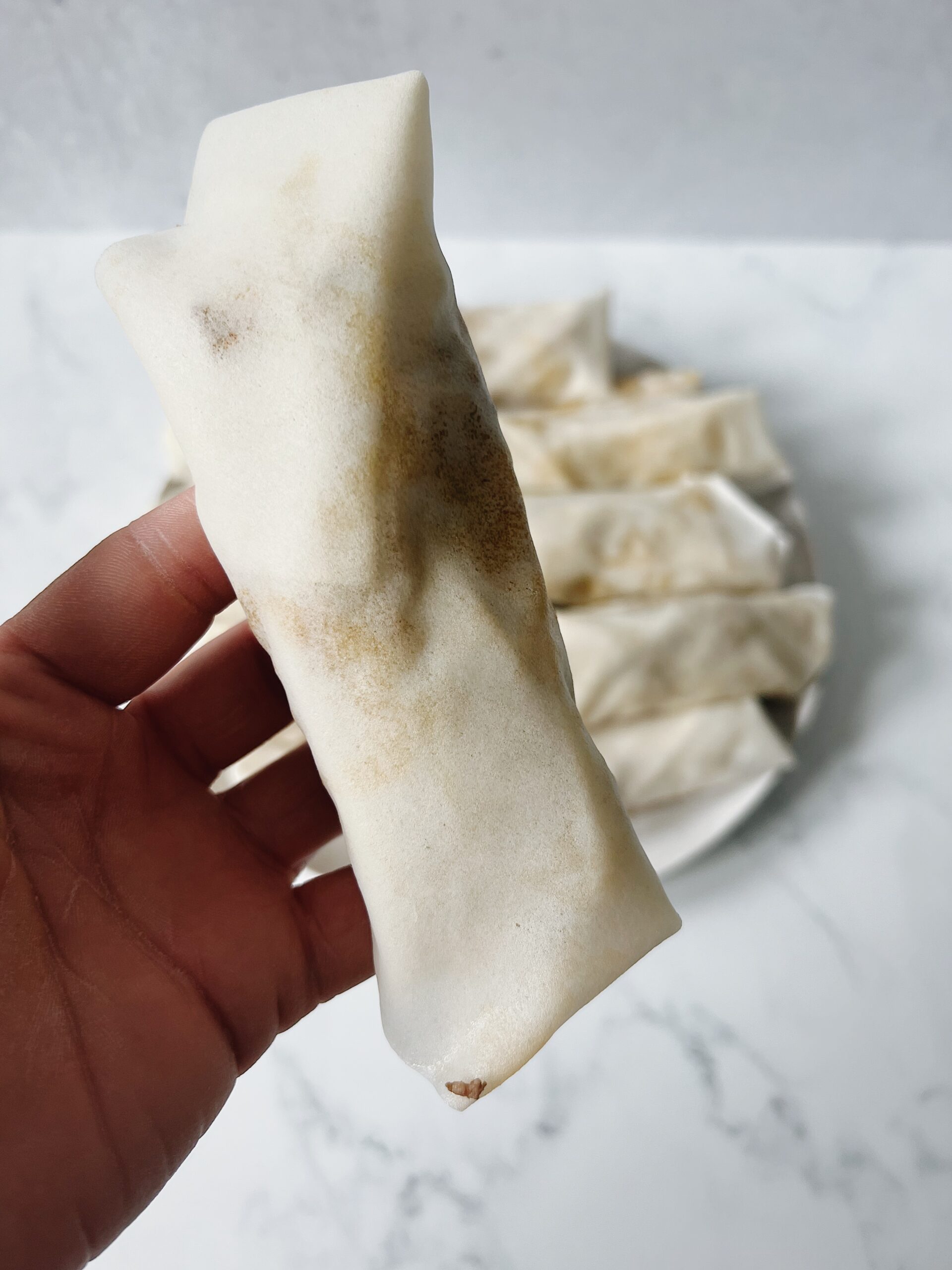 • Freeze lumpia for 20 minutes before deep frying. At this point you can also keep the ones you aren't going to be using in the freezer. I usually place the whole plate or sheet pan in the freezer before transferring the Lumpia into a ziplock bag. That way they don't stick together and its easier to take out one by one.