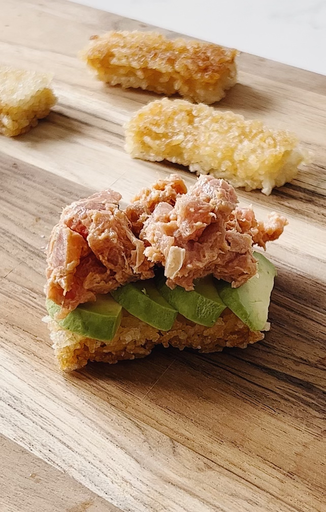 There are endless toppings you can try! I’ve seen everything from salmon to canned tuna or even chicken. It’s ideal for a bite-sized snack or appetizer. Personally, I went for a spicy ahi version since it’s my favorite!